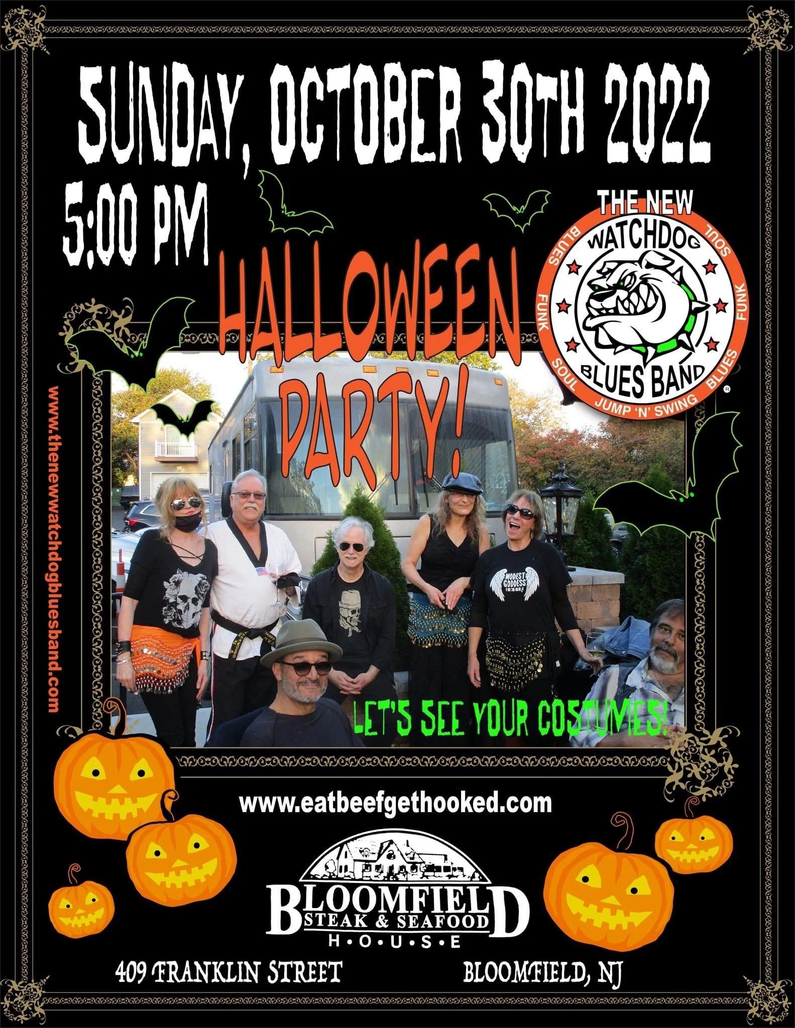 The New Watchdog Blues Band Sunday, October 30, 2022 5:00 PM 8:00 PM 17:00 20:00 Google Calendar ICS A costume party with our favorites! Come do The Monster Mash with us.
